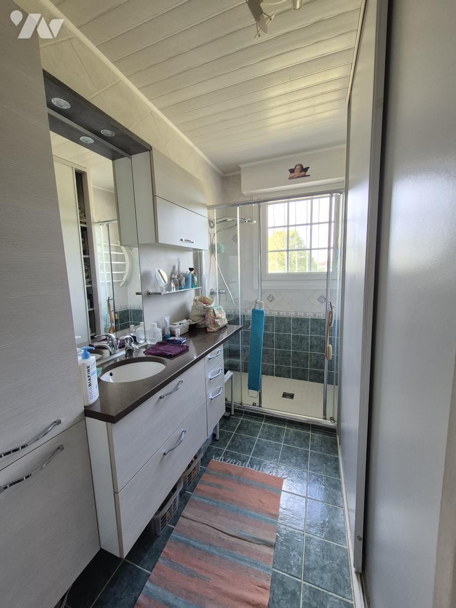 Maison individuelle de 143,5 m² habitables sur sous-sol complet, située dans un secteur calme et agréable. En rez-de-chaussée : entrée, salon-séjour lumineux de 32 m², cuisine équipée, deux chambres, salle d’eau et WC. À l’étage : trois chambres, bureau, seconde salle d’eau avec WC et grenier. Sous-sol complet avec buanderie, cave, cellier, garage 1 à 2 voitures (porte motorisée) et atelier. Jardin clos avec terrasse exposée Ouest et chalet bois. Chauffage central fioul, ballon d’eau chaude électrique, menuiseries PVC double vitrage avec volets roulants partiellement électriques. Fosse septique à remettre aux normes. Maison spacieuse, bien entretenue et lumineuse, offrant un beau potentiel pour une famille.